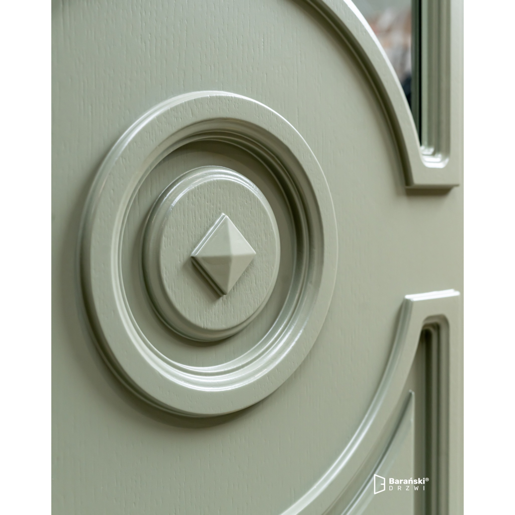 Baranski lauko durų individualus projektas. Arkinis durų kampas. Veidrodiniai stiklo paketai. Išilginė stačiakampė "Antaba" rankena. Baranski lauko durų individualus projektas. Arkinė durų konstrukcija su šaliduriais ir viršlangiais. Veidrodiniai stiklo paketai. Baranski lauko durų individualus projektas. Geltona matinė RAL paletės spalva. Stiklo dekoro stakta su stiklo dekoro švieslangiu ir "refleks" stiklo paketu. Baranski lauko durų individualus projektas. Simetriškos dvivėrės durys su ornamentais. Matiniai stiklo paketai.